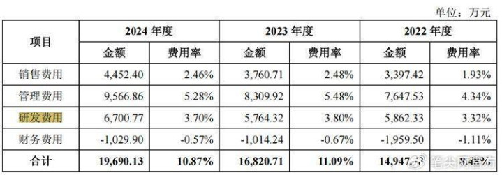 报告期内,福恩股份的研发费用分别为5,862.33万元、5,764.32万元和6,700.77万元,占当期营业收入的比重分别为3.32%、3.80%和3.70%,三年研发费用率均未超过4%。